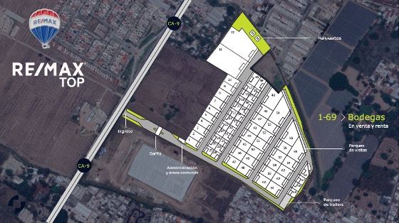 Bodegas sin columnas internas, cuentan con calles de acceso de 30 mts de ancho, 3 carriles de ingreso y 3 carriles de egreso.