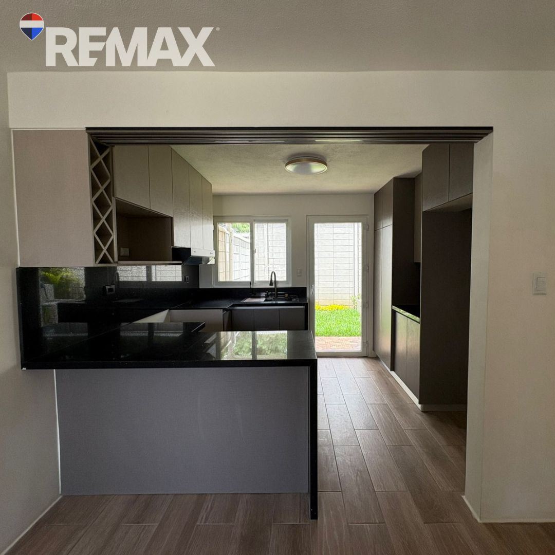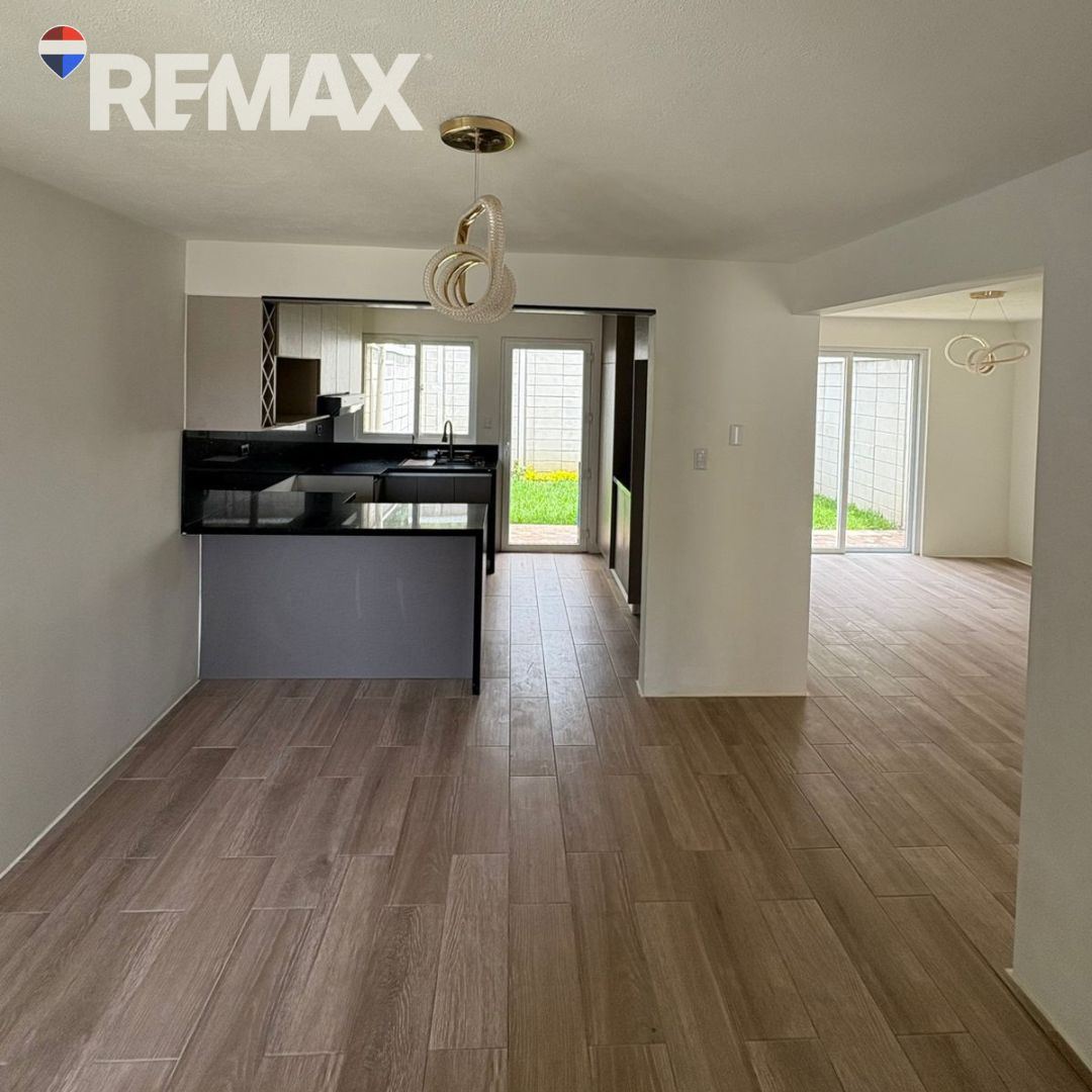 Casa de 2 niveles, con jardín posterior, baño de visitas, estudio, sala-comedor, cocina con gabinetes, desayunador, área de lavandería, pérgola 3×2 mts.