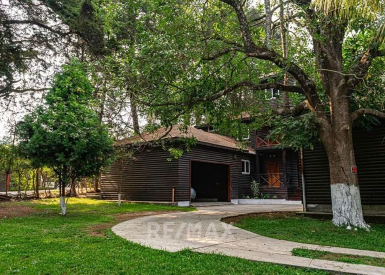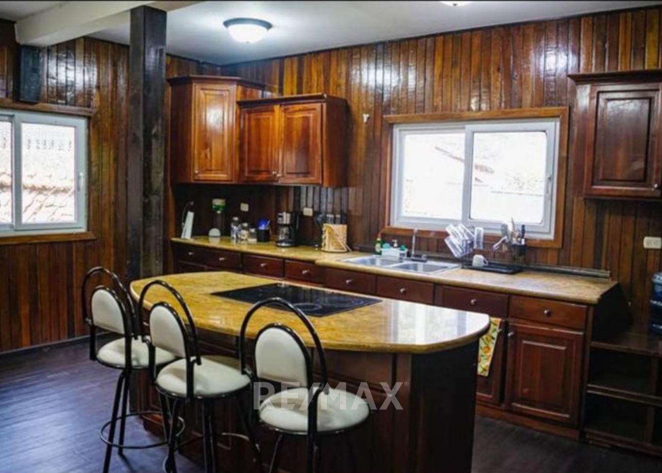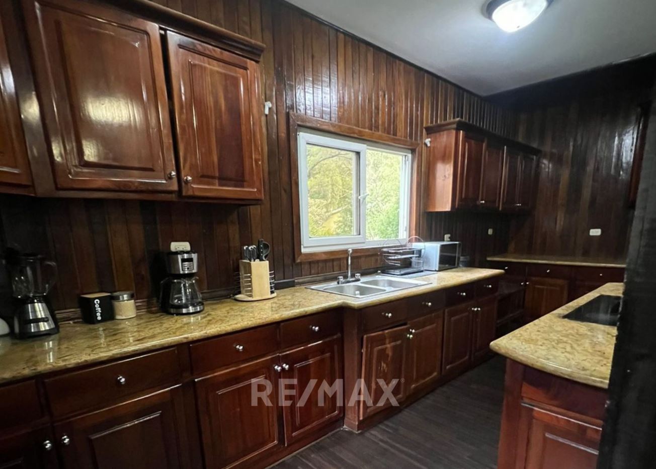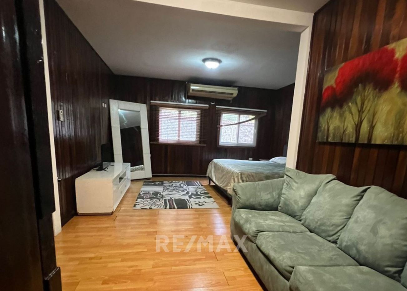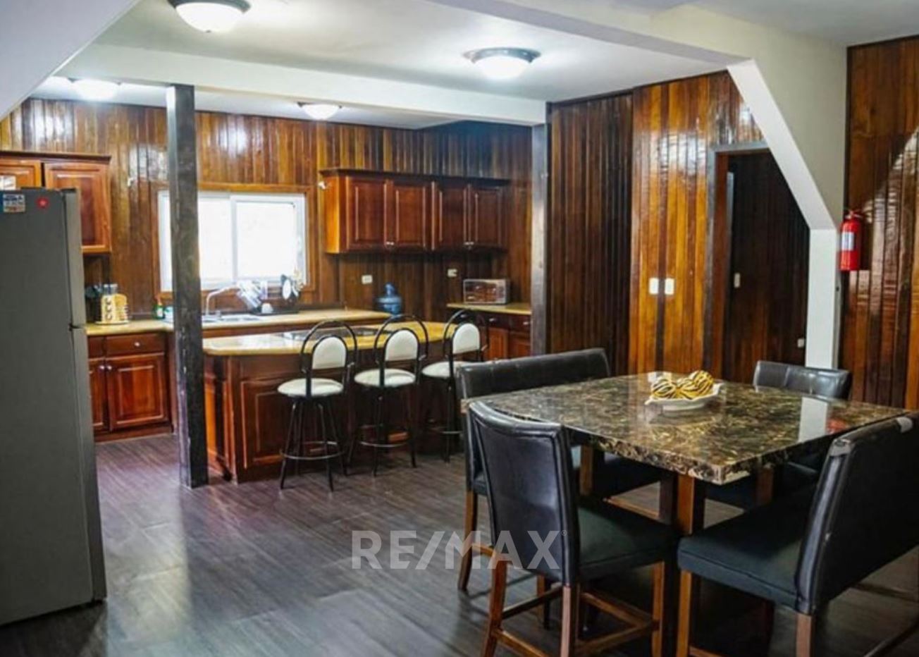 Casa con jardín frontal y posterior, baño de visitas, estudio, sala-comedor, cocina con gabinetes, área de lavandería, pérgola, 2 bodegas pequeñas, sala familiar, dormitorio principal con walk in closet, ducha, tina, bidet, churrasquera.