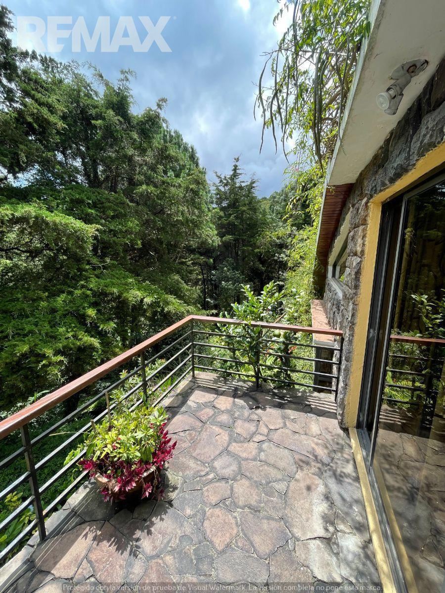 Terraza externa cubierta con vistas al bosque