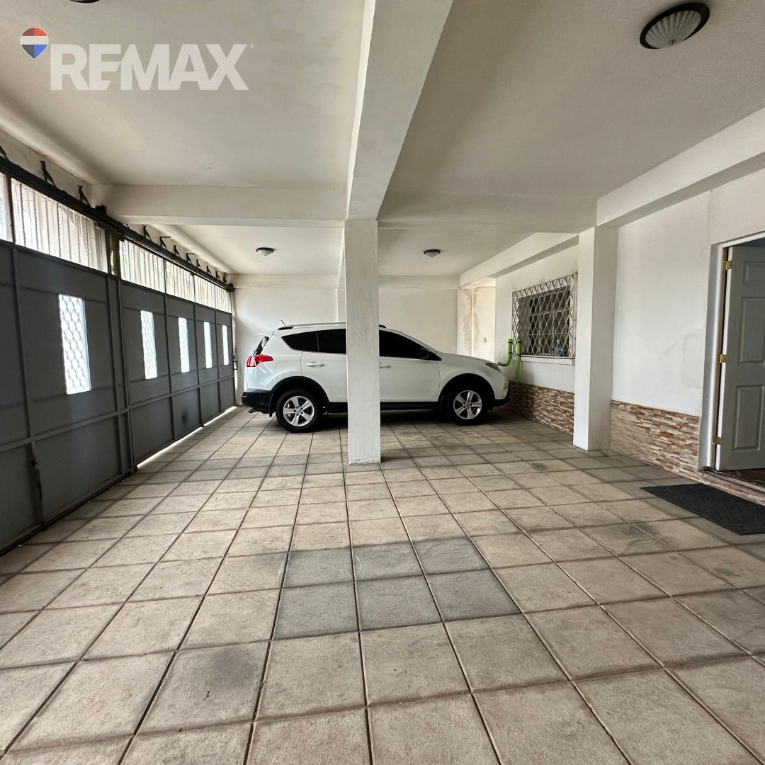 Portones metálicos plegables para los parqueos y puerta peatonal.