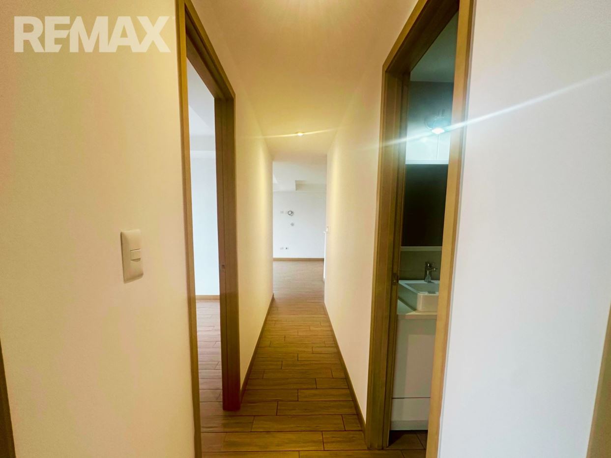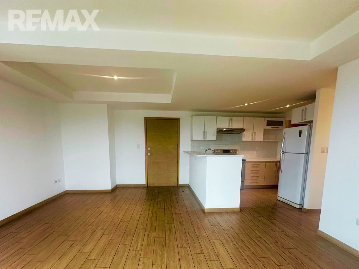 Apartamento acogedor en nivel alto, con sala-comedor, salida al balcón, cocina con gabinetes, desayunador, área de lavandería con torre de lavado, bodega con 3.9 mts, walk in closet en dormitorio principal, closet dormitorio secundario, ducha.