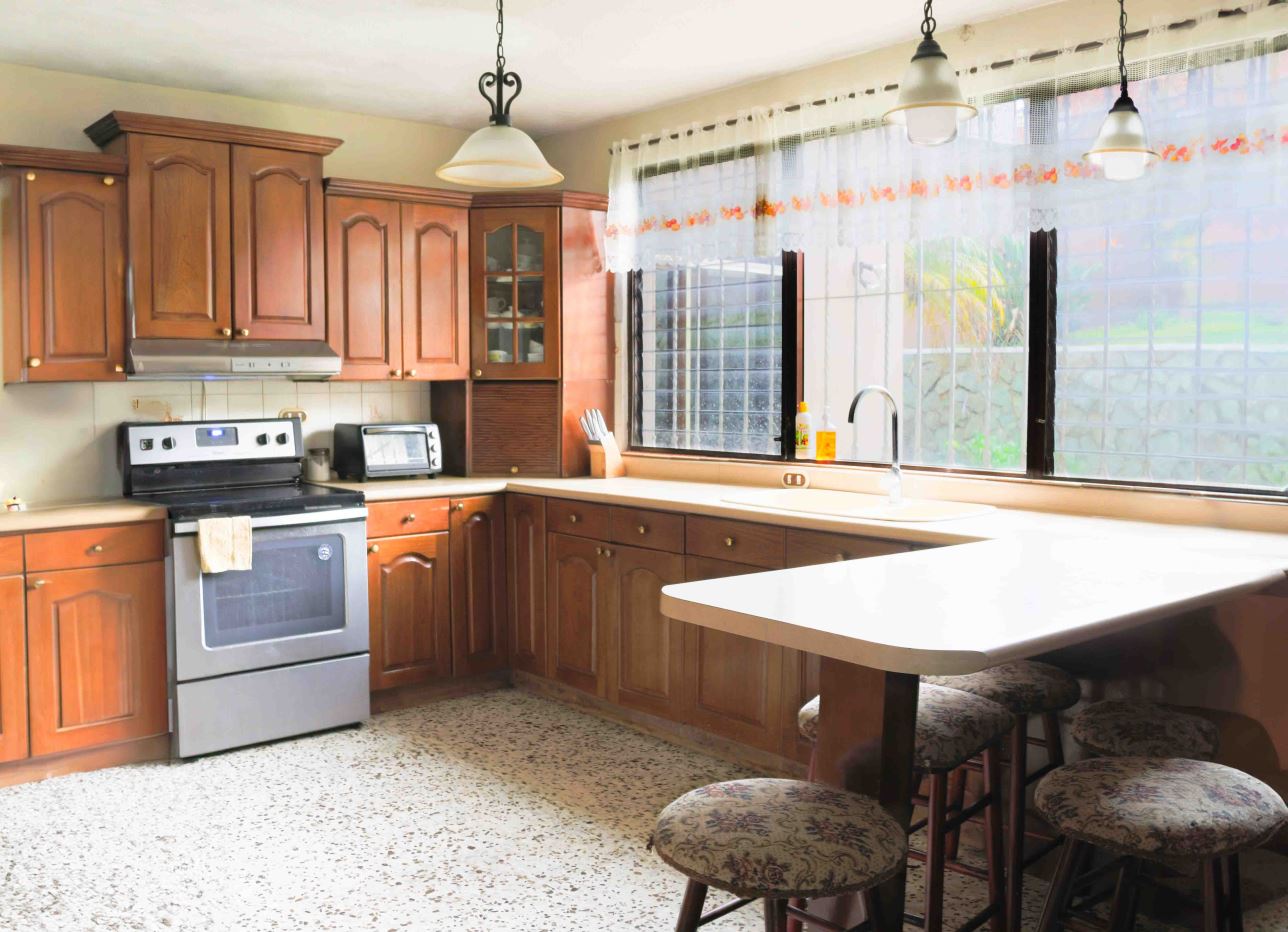 Descubre esta hermosa casa que cuenta con un amplio jardín posterior, ideal para construir 2 casas pequeñas. En la parte frontal, disfrutarás de un jardín pequeño que da la bienvenida a tus visitantes. – Portón eléctrico para mayor seguridad. – Baño de visitas. – Estudio amplio e individual, perfecto para trabajar desde casa. – Sala/comedor acogedora. – Cocina equipada con gabinetes. – Área de lavandería con pila. – Cuarto de servicio con baño completo, ubicado junto a la lavandería. – Bodega bajo las gradas para almacenamiento adicional. – Sala familiar ideal para momentos de convivencia. – Dormitorios con closet de cedro. – Dormitorio principal con closet y baño completo.