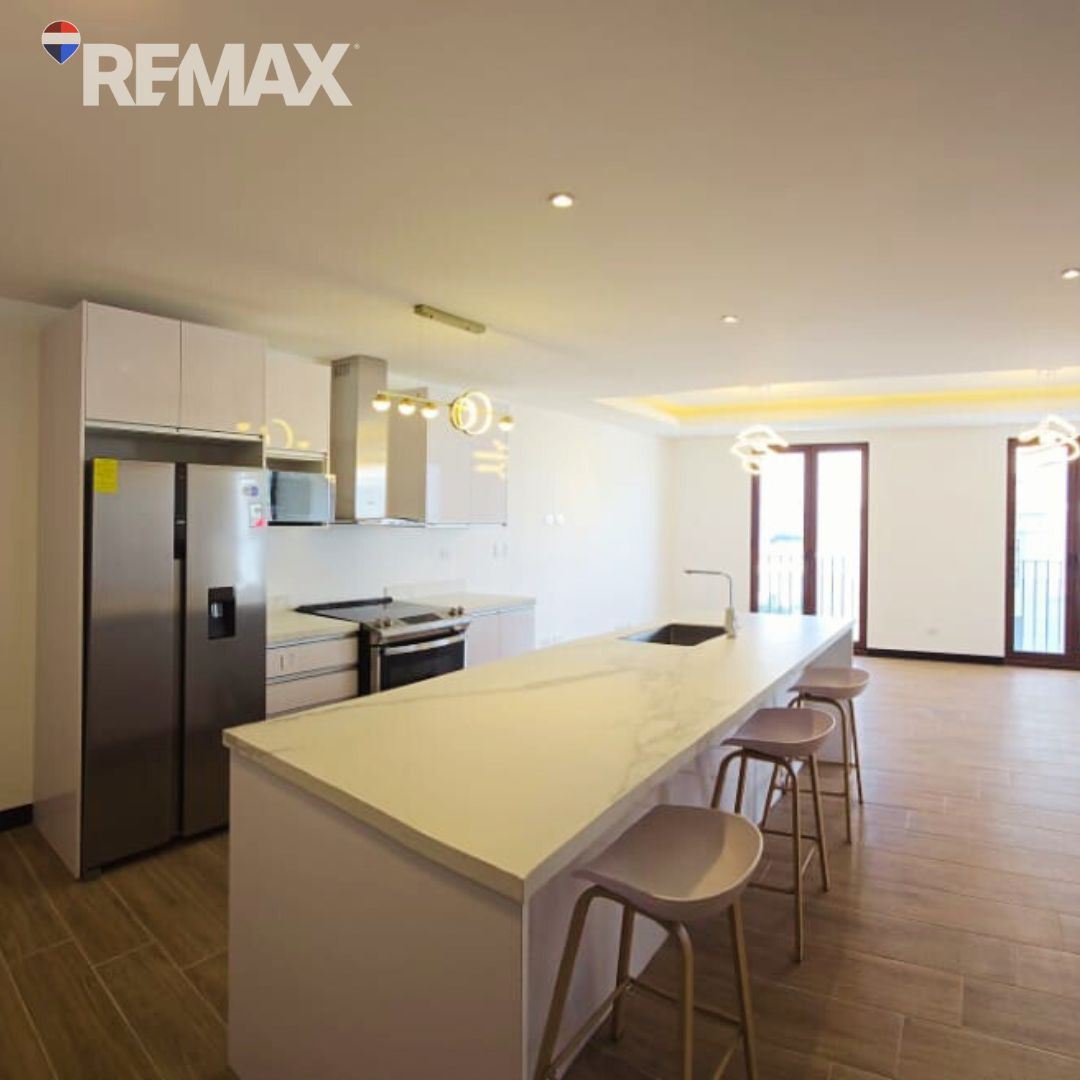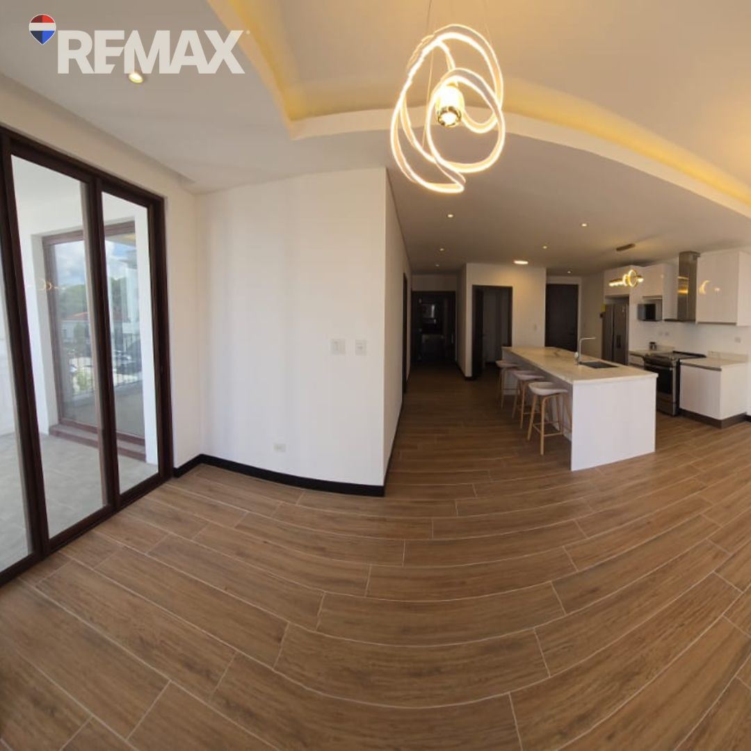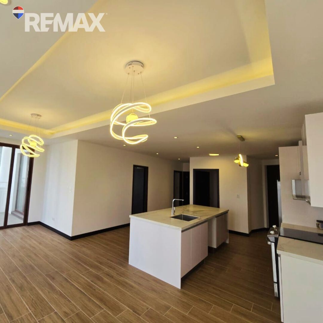 Moderno apartamento de 111.49 m², con espacios bien distribuidos y ambientes iluminados.Cuenta con sala-comedor con acceso al balcón, ideal para disfrutar de una vista agradable, baño de visitas, cocina equipada con gabinetes y desayunador, área de lavandería y pérgola.